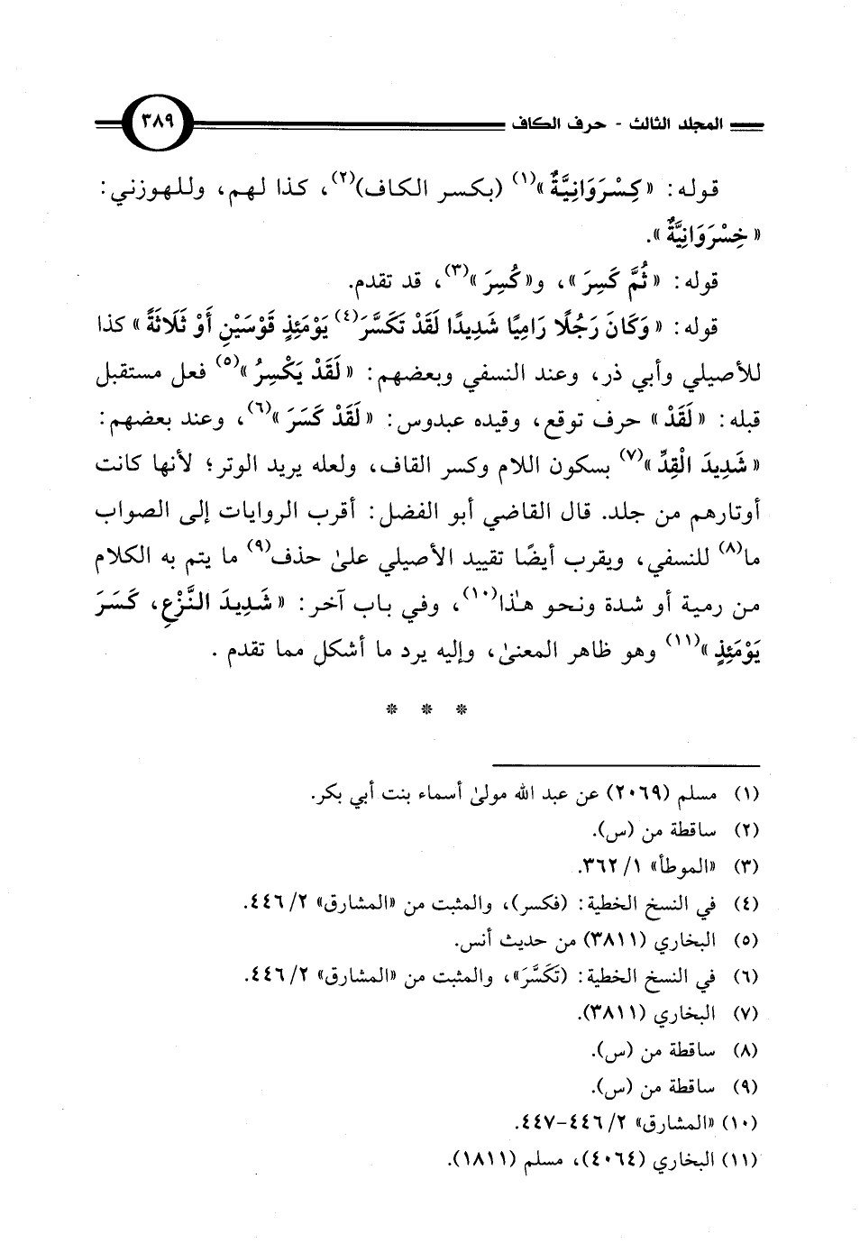 قوله: "كِسْرَوَانِيَّةٌ" (¬1) (بكسر الكاف) (¬2)، كذا لهم، وللهوزني: "خِسْرَوَانِيَّةٌ".