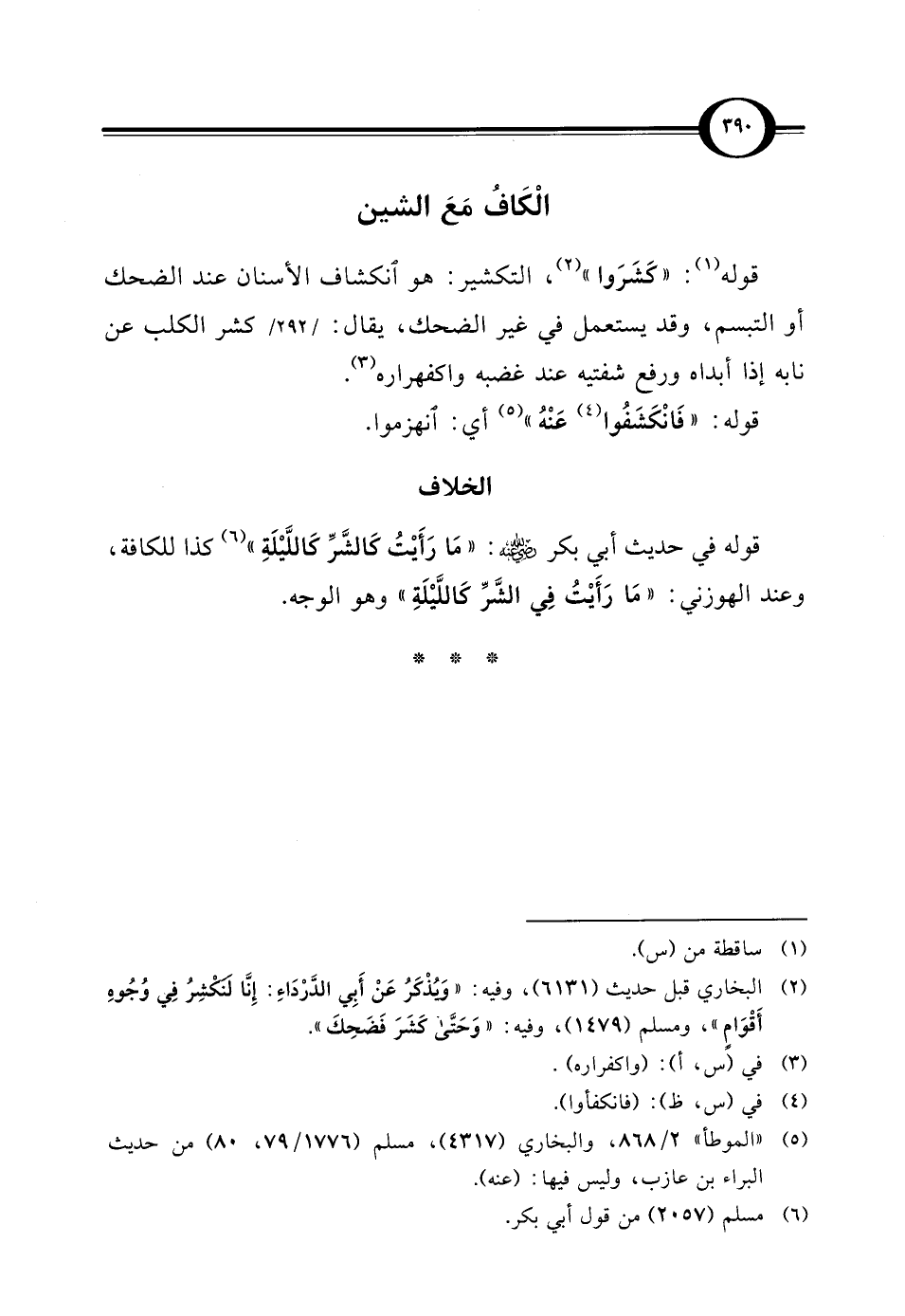 (¬2) البخاري قبل حديث (6131)، وفيه: "وَيُذْكَرُ عَنْ أَبِي الدَّرْداءِ: إِنّا لَنَكشِرُ في وُجُوهِ أَقْوَامٍ"، ومسلم (1479)، وفيه: "وَحَتَّى كَشَرَ فَضَحِكَ".