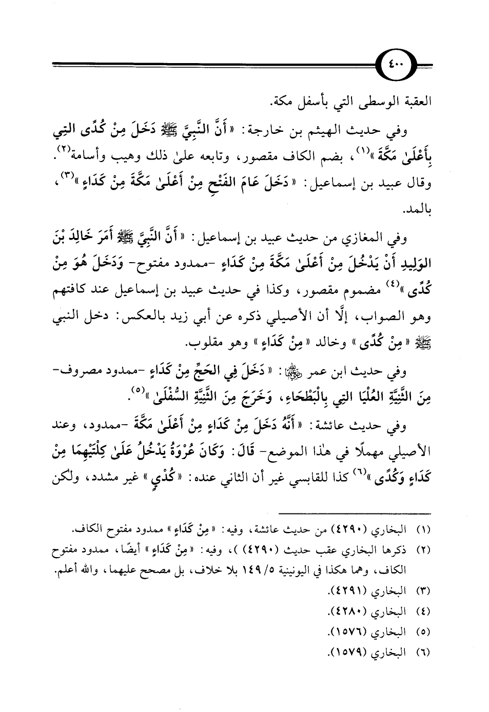 (¬2) ذكرها البخاري عقب حديث (4290)، وفيه "مِنْ كَداءٍ" أيضًا، ممدود مفتوح الكاف، وهما هكذا في اليونينية 5/ 149 بلا خلاف، بل مصحح عليهما، والله أعلم.