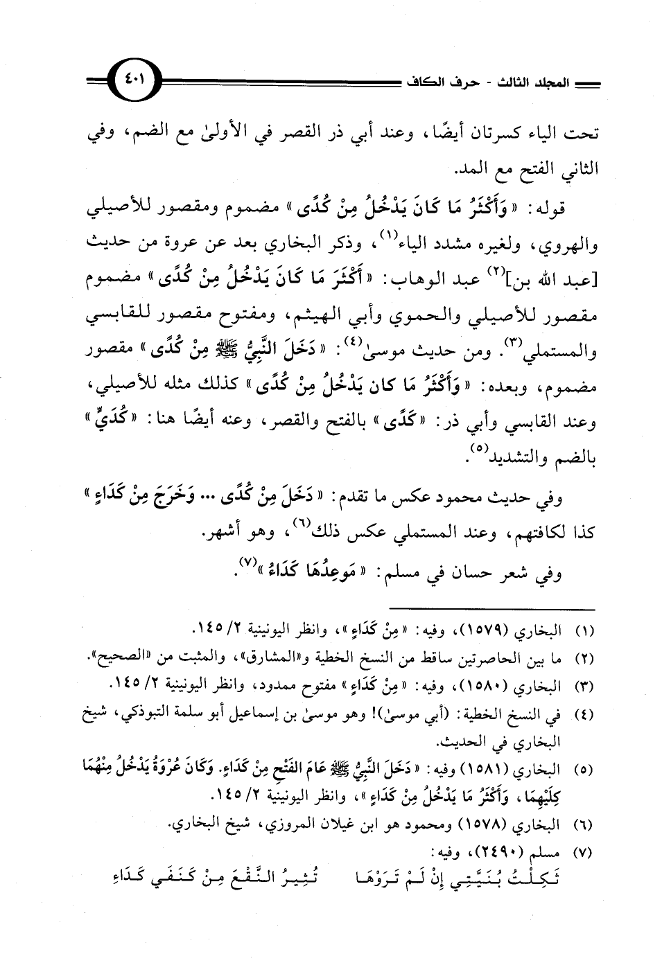 (¬5) البخاري (1581) وفيه: "دَخَلَ النَّبِيُّ -صلى الله عليه وسلم- عامَ الفَتْحِ مِنْ كَداءٍ. وَكانَ عُرْوَةُ يدخلُ مِنْهُما كلَيْهِما، وَأكْثَرُ ما يدخلُ مِنْ كَداءٍ"، وانظر اليونينية 2/ 145.