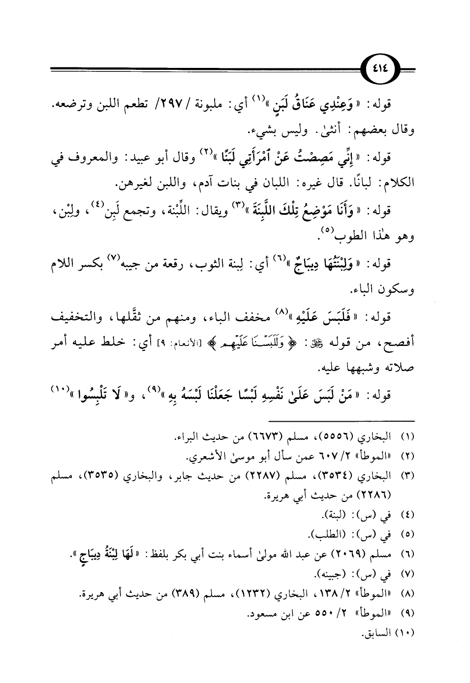 قوله: "إِنِّي مَصِصْتُ عَنْ امْرَأَتِي لَبَنًا" (¬2) وقال أبو عبيد: والمعروف فِي الكلام: لبانًا. قال غيره: اللبان فِي بنات آدم، واللبن لغيرهن.
