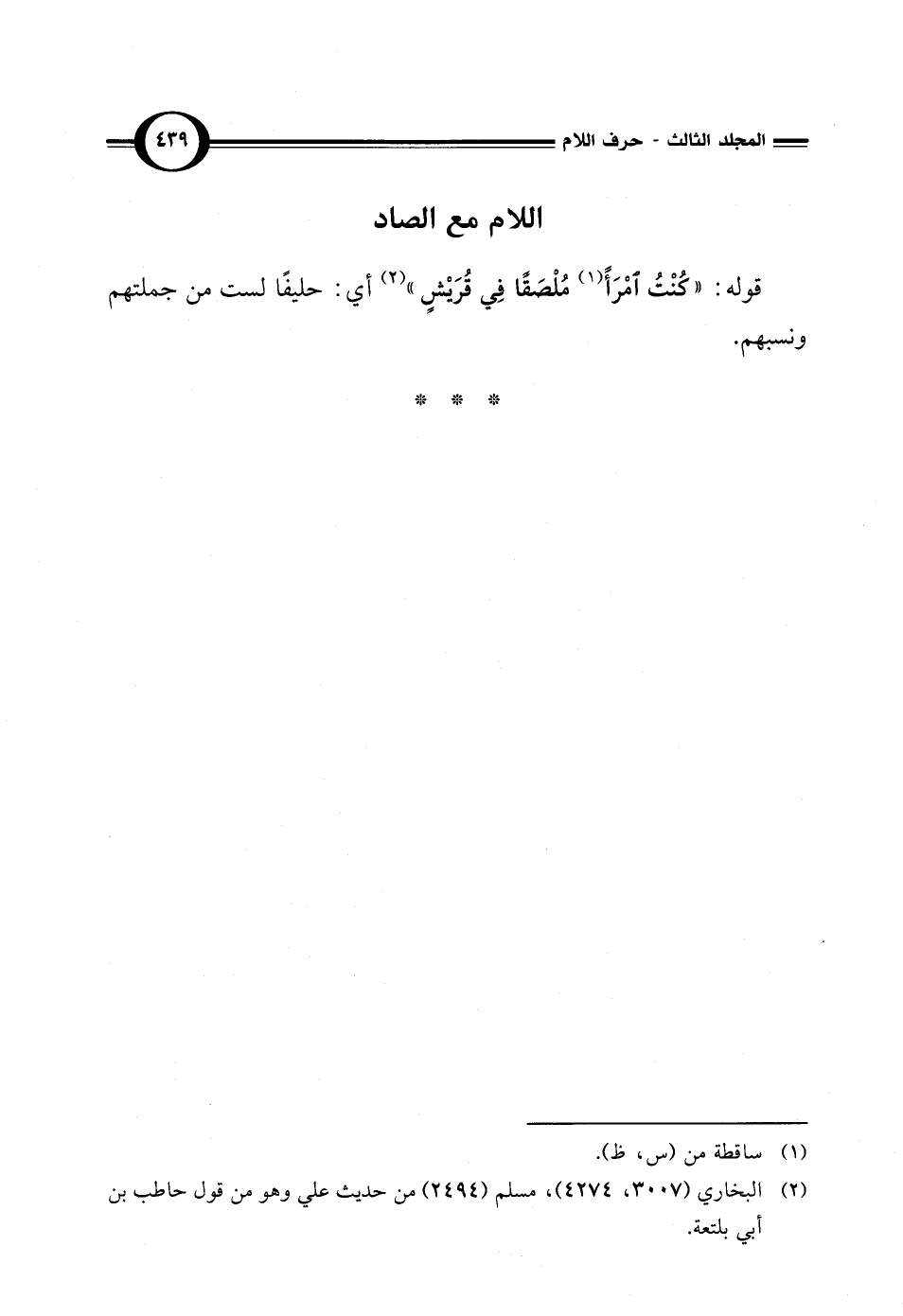 قوله: "كُنْتُ امْرَأً (¬1) مُلْصَقًا في قُرَيْشٍ" (¬2) أي: حليفًا لست من جملتهم ونسبهم.
