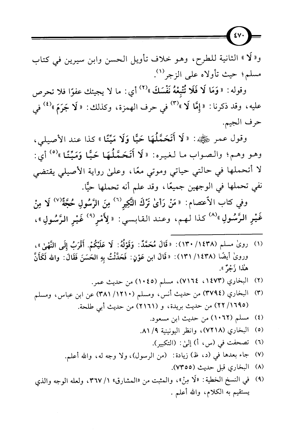 (¬1) روى مسلم (1438/ 130): " قَالَ مُحَمَّدٌ: وَقَوْلُهُ: لَا عَلَيْكُمْ. أَقْرَبُ إِلَى النَّهْى"، وروى أيضًا (1438/ 131): " قَالَ ابن عَوْنٍ: فَحَدَّثْتُ بِهِ الحَسَنَ فَقَالَ: والله لَكَأَنَّ هذا زَجْرٌ ".