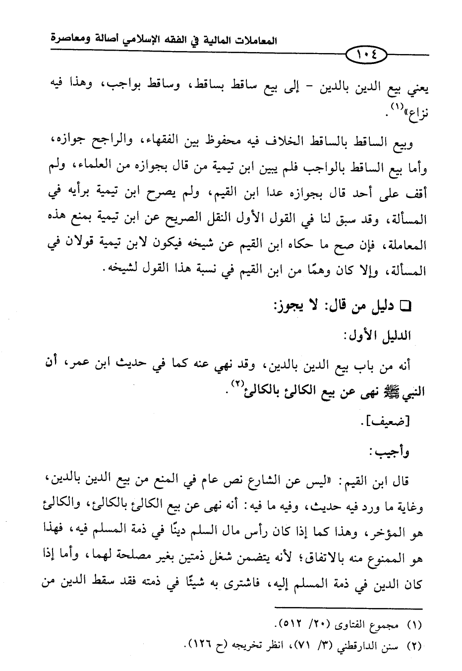وبيع الساقط بالساقط الخلاف فيه محفوظ بين الفقهاء، والراجح جوازه، وأما بيع الساقط بالواجب فلم يبين ابن تيمية من قال بجوازه من العلماء، ولم أقف على أحد قال بجوازه عدا ابن القيم، ولم يصرح ابن تيمية برأيه في المسألة، وقد سبق لنا في القول الأول النقل الصريح عن ابن تيمية بمنع هذه المعاملة، فإن صح ما حكاه ابن القيم عن شيخه فيكون لابن تيمية قولان في المسألة، وإلا كان وهمًا من ابن القيم في نسبة هذا القول لشيخه.