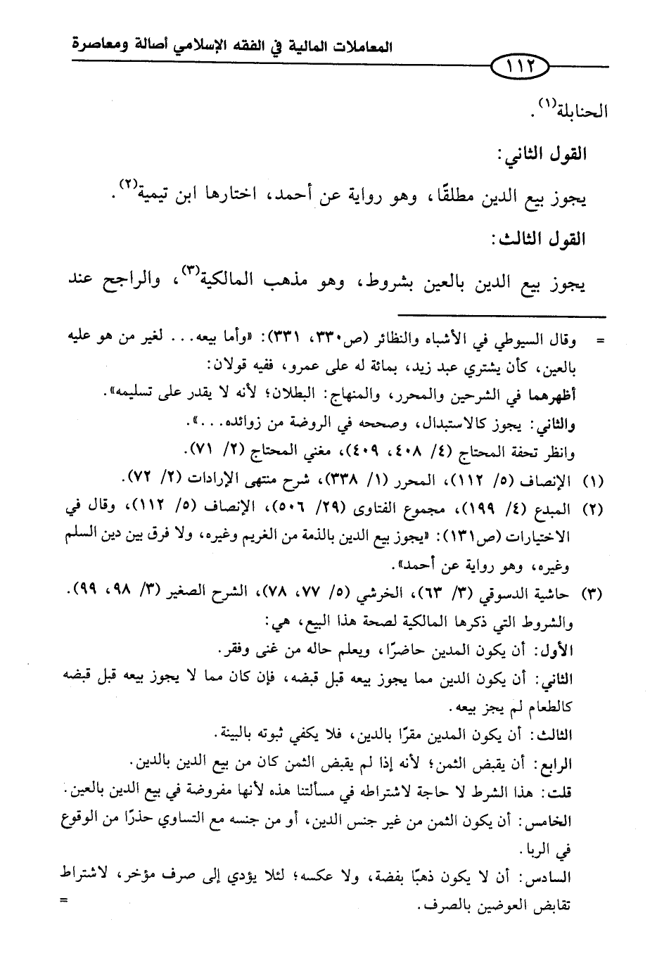 (¬٢) المبدع (٤/ ١٩٩)، مجموع الفتاوى (٢٩/ ٥٠٦)، الإنصاف (٥/ ١١٢)، وقال في الاختيارات (ص ١٣١): "يجوز بيع الدين بالذمة من الغريم وغيره، ولا فرق بين دين السلم وغيره، وهو رواية عن أحمد".