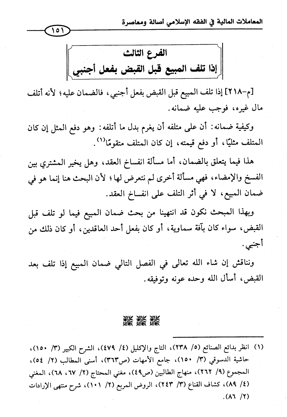 ونناقش إن شاء الله تعالى في الفصل التالي ضمان المبيع إذا تلف بعد القبض، أسأل الله وحده عونه وتوفيقه.