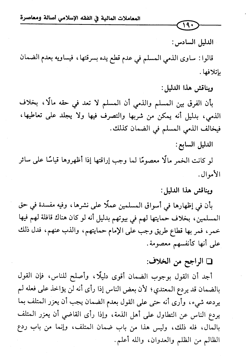 أجد أن القول بوجوب الضمان أقوى دليلًا، وأصلح للناس، فإن القول بالضمان قد يردع المعتدي؛ لأن بعض الناس إذا رأى أنه لن يؤاخذ على فعله لم يردعه شيء، وأرى أنه حتى على القول بعدم الضمان يجب أن يعزر المتلف بما يردع الناس عن التطاول على أهل الذمة، وإذا رأى القاضي أن يعزر المتلف بالمال، فله ذلك، وليس هذا من باب ضمان المتلف، وإنما من باب ردع الظالم من الظلم والعدوان، والله أعلم.