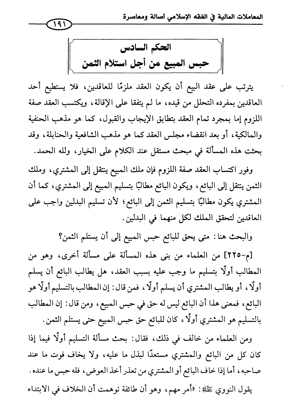 الحكم السادس حبس المبيع من أجل استلام الثمن