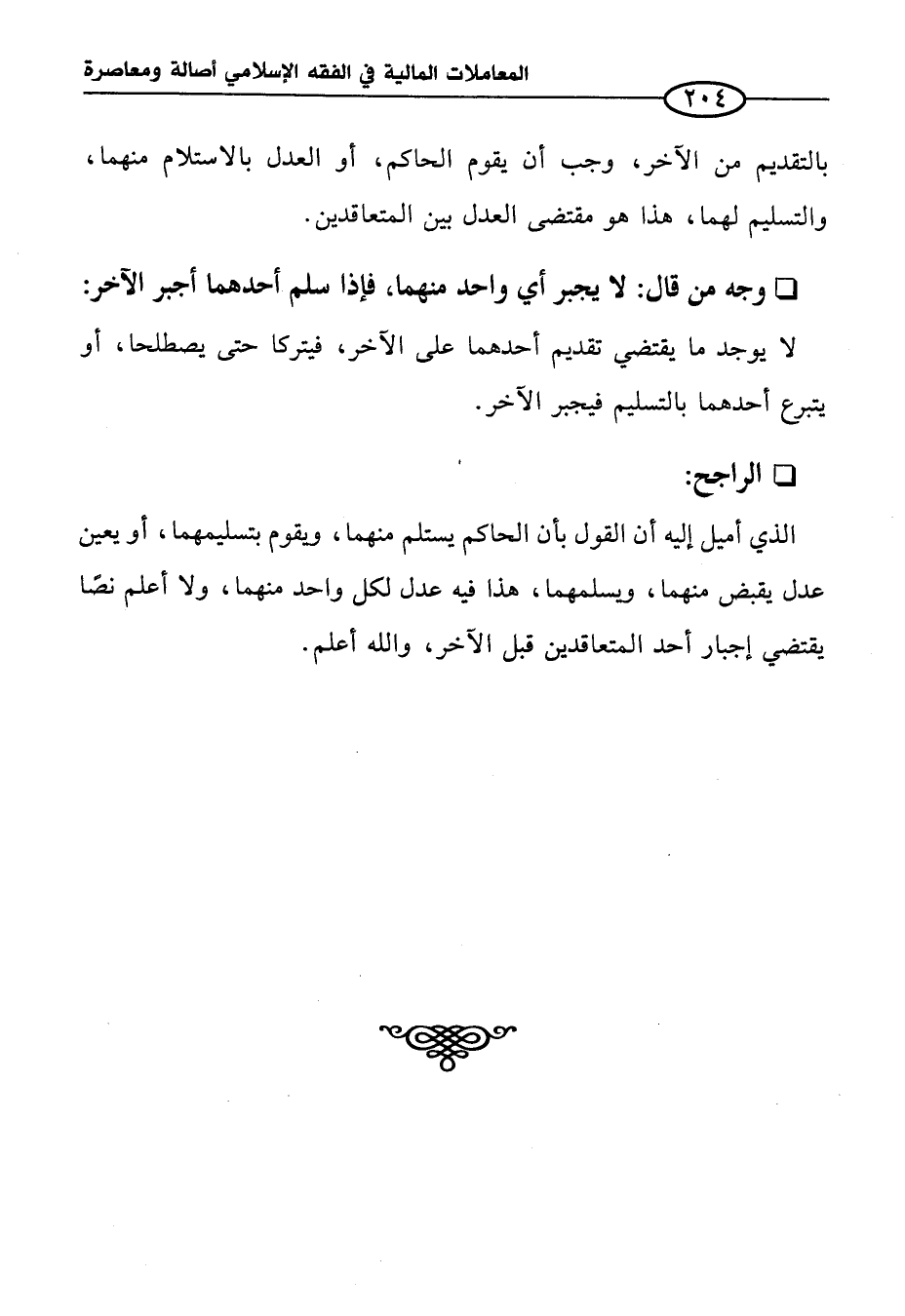 بالتقديم من الآخر، وجب أن يقوم الحاكم، أو العدل بالاستلام منهما، والتسليم لهما، هذا هو مقتضى العدل بين المتعاقدين.