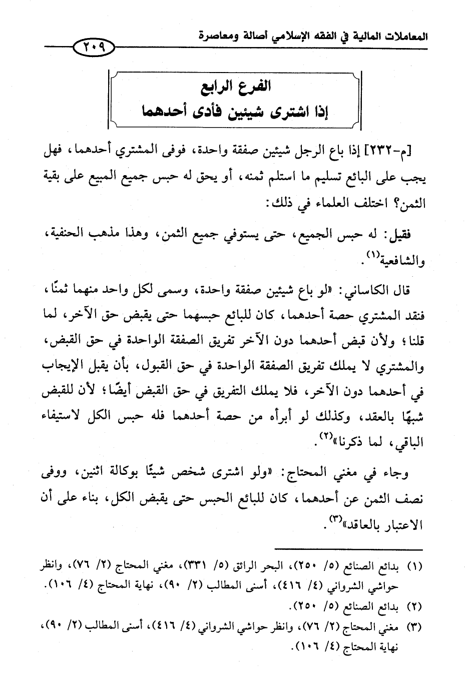 الفرع الرابع إِذا اشترى شيئين فأدى أحدهما
