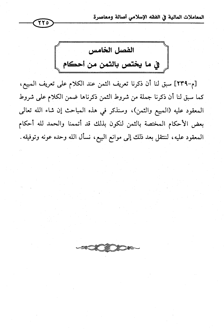 الفصل الخامس في ما يختص بالثمن من أحكام
