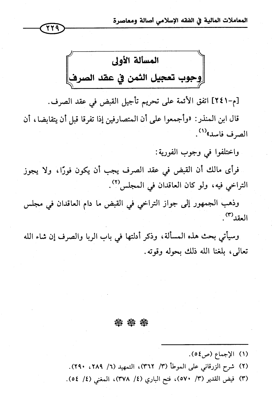 المسألة الأولى وجوب تعجيل الثمن في عقد الصرف