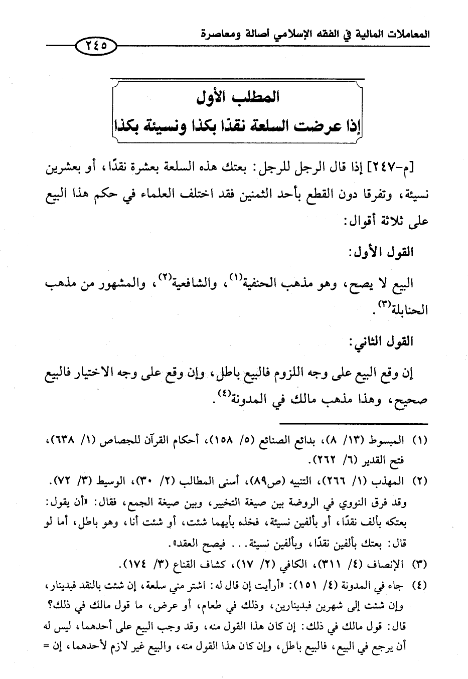 المطلب الأول إذا عرضت السلعة نقدًا بكذا ونسيئة بكذا