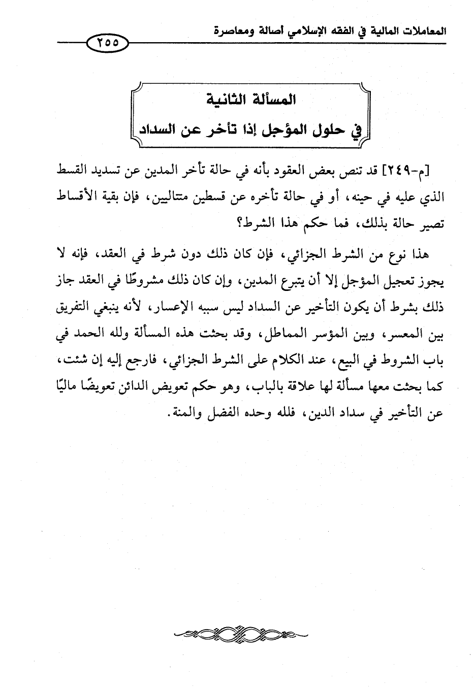 المسألة الثانية في حلول المؤجل إذا تأخر عن السداد
