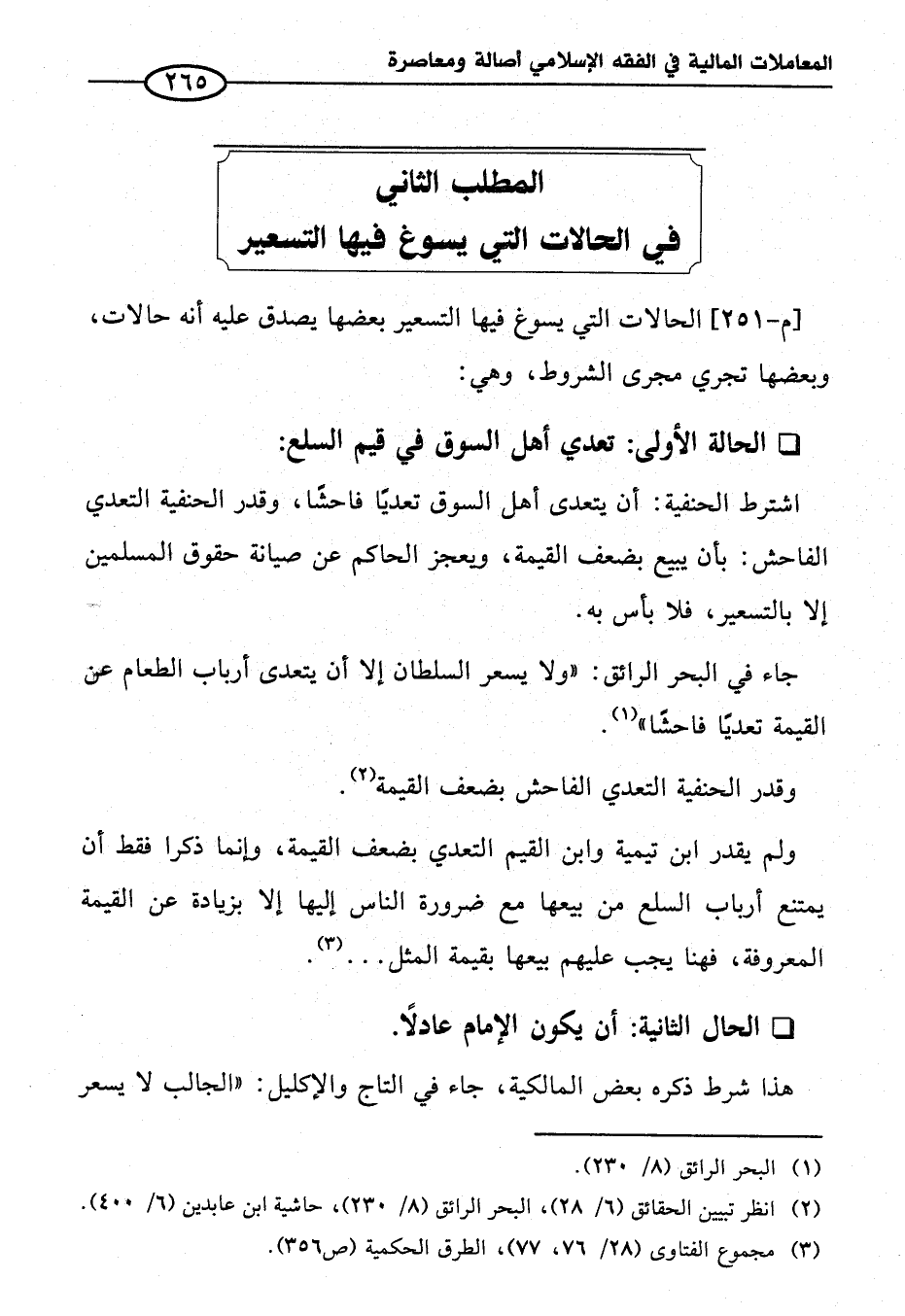 المطلب الثاني في الحالات التي يسوغ في التسعير