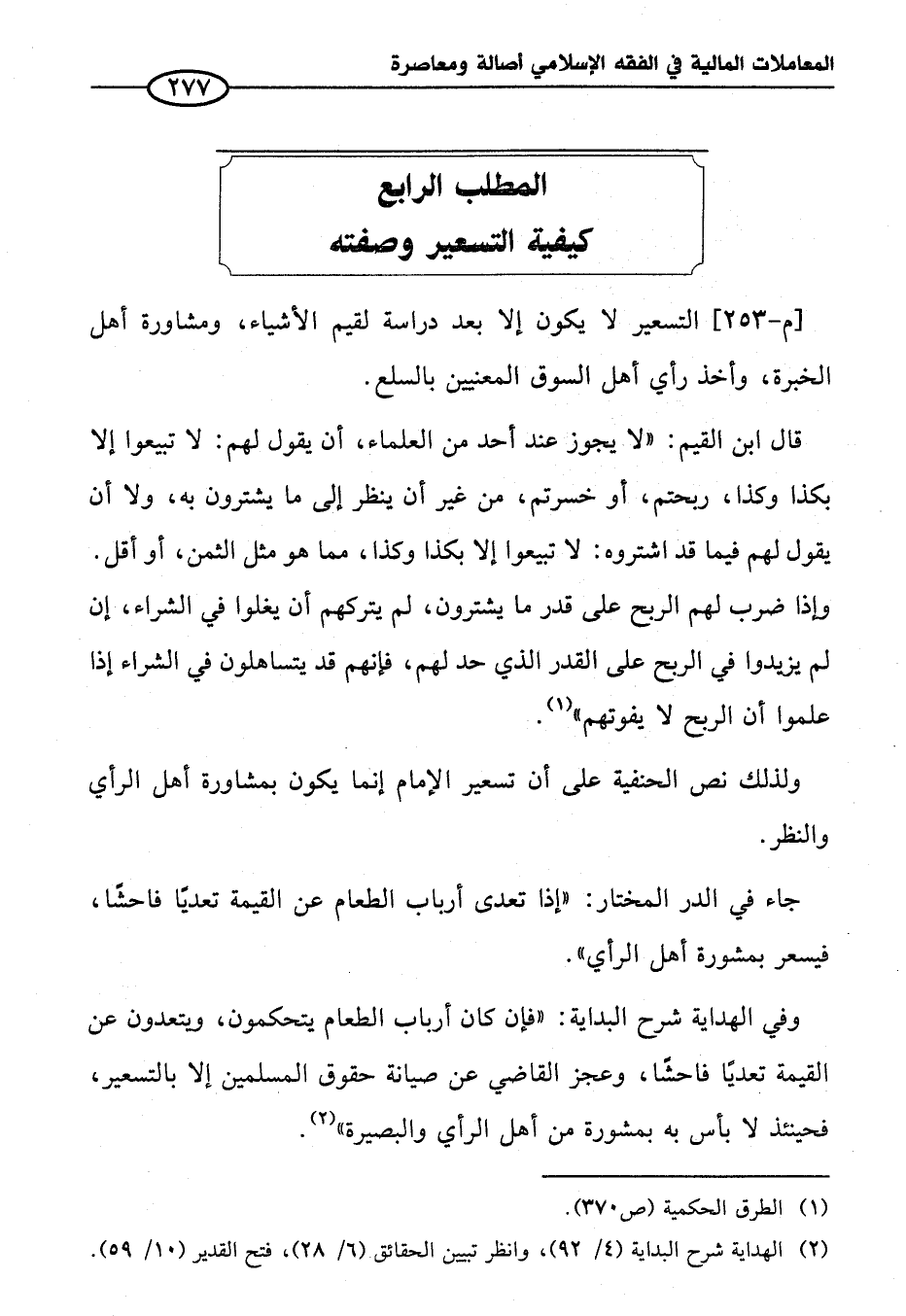 [م - ٢٥٣] التسعير لا يكون إلا بعد دراسة لقيم الأشياء، ومشاورة أهل الخبرة، وأخذ رأي أهل السوق المعنيين بالسلع.