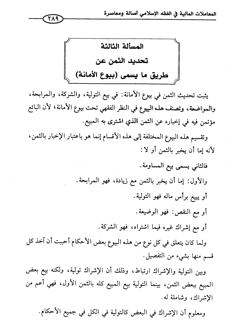 المسألة الثالثة تحديد الثمن عن طريق ما يسمى (بيوع الأمانة)