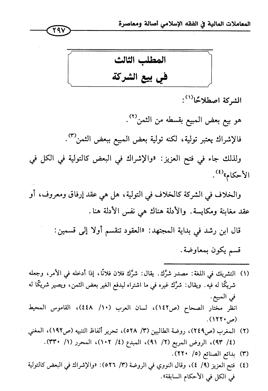 (¬٤) فتح العزيز (٩/ ٤)، وقال النووي في الروضة (٣/ ٥٢٦): "والإشراك في البعض كالتولية في الكل في الأحكام السابقة".