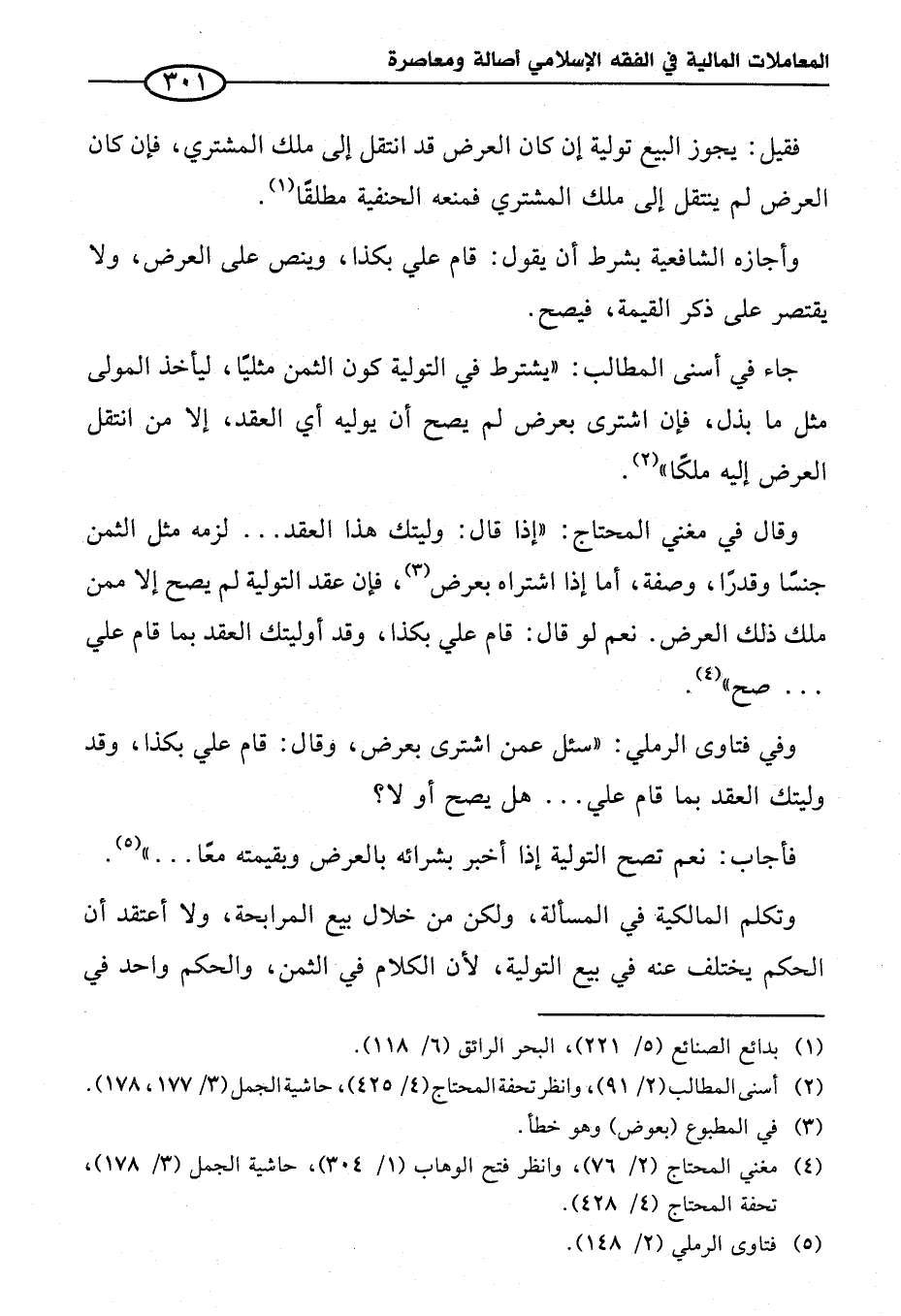 فأجاب: نعم تصح التولية إذا أخبر بشرائه بالعرض وبقيمته معًا ... " (¬٥).