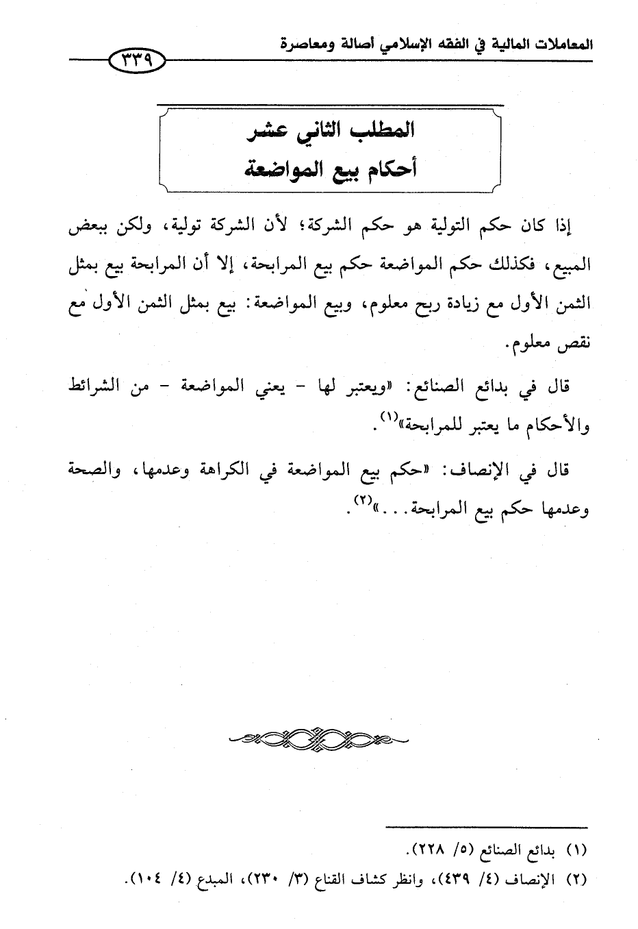 قال في الإنصاف: "حكم بيع المواضعة في الكراهة وعدمها، والصحة وعدمها حكم بيع المرابحة ... " (¬٢).