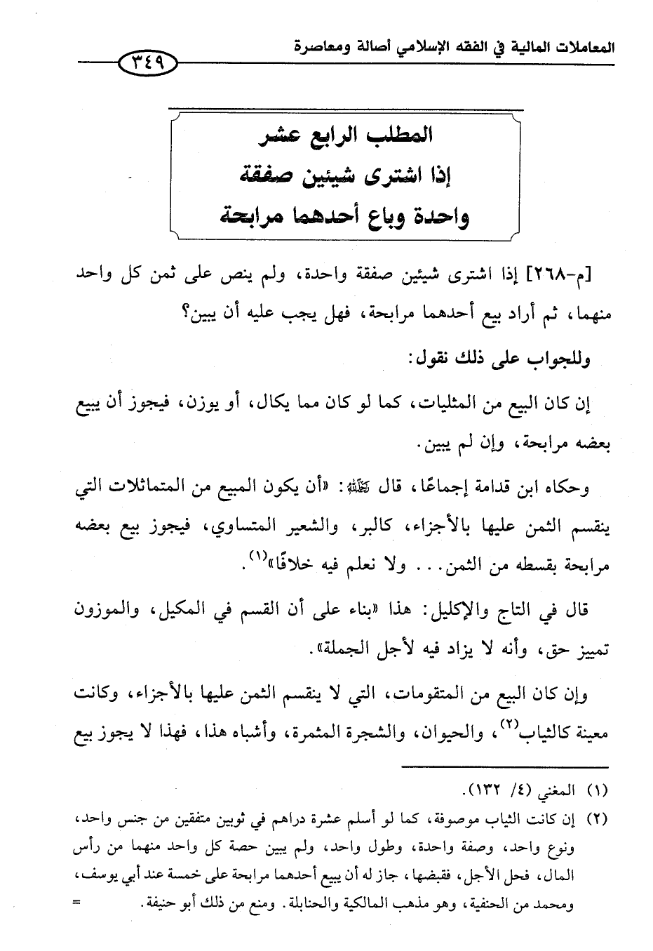 المطلب الرابع عشر إذا اشترى شيئين صفقة واحدة وباع أحدهما مرابحة