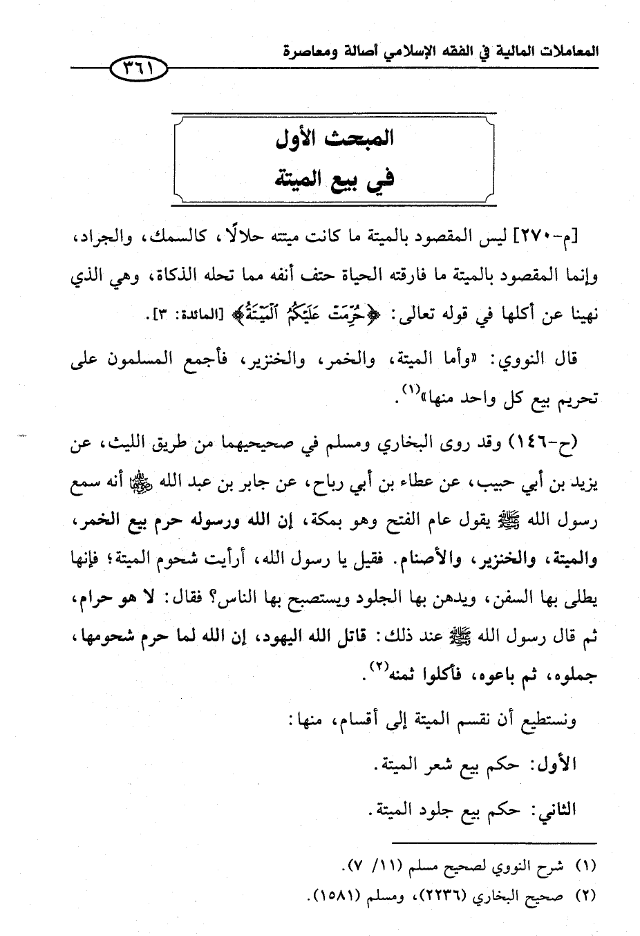 المبحث الأول في بيع الميتة