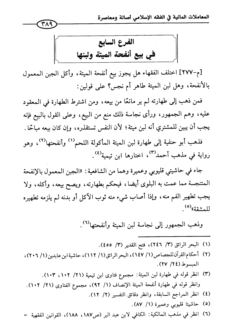 الفرع السابع في بيع أنفحة الميتة ولبنها