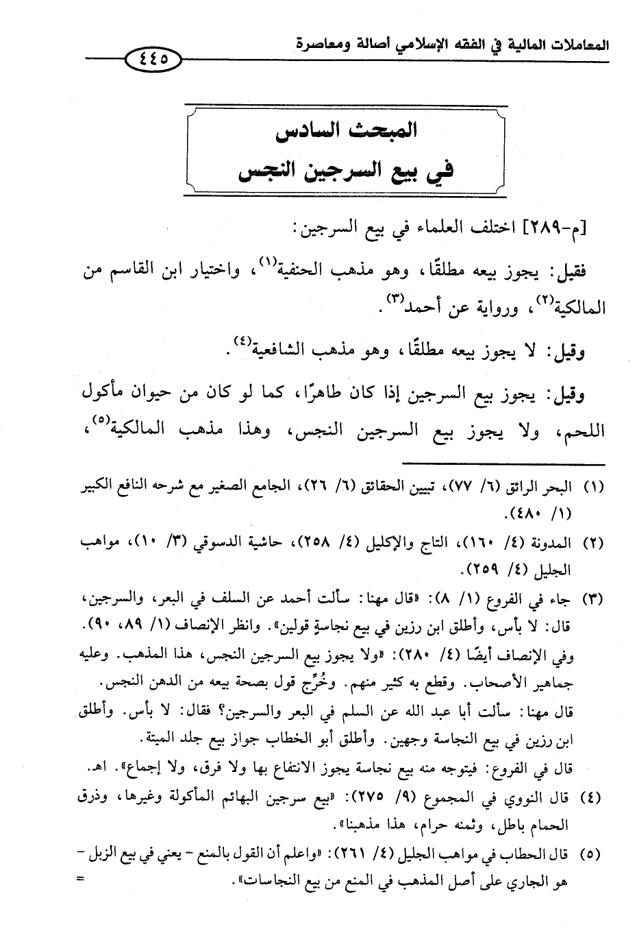 (¬٥) قال الحطاب في مواهب الجليل (٤/ ٢٦١): "واعلم أن القول بالمنع -يعني في بيع الزبل- هو الجاري على أصل المذهب في المنع من بيع النجاسات". =