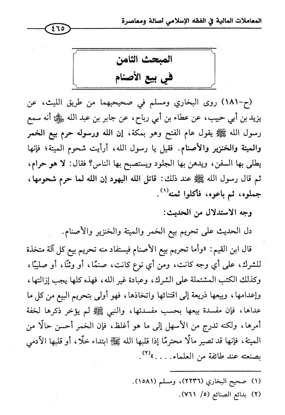 المبحث الثامن في بيع الأصنام