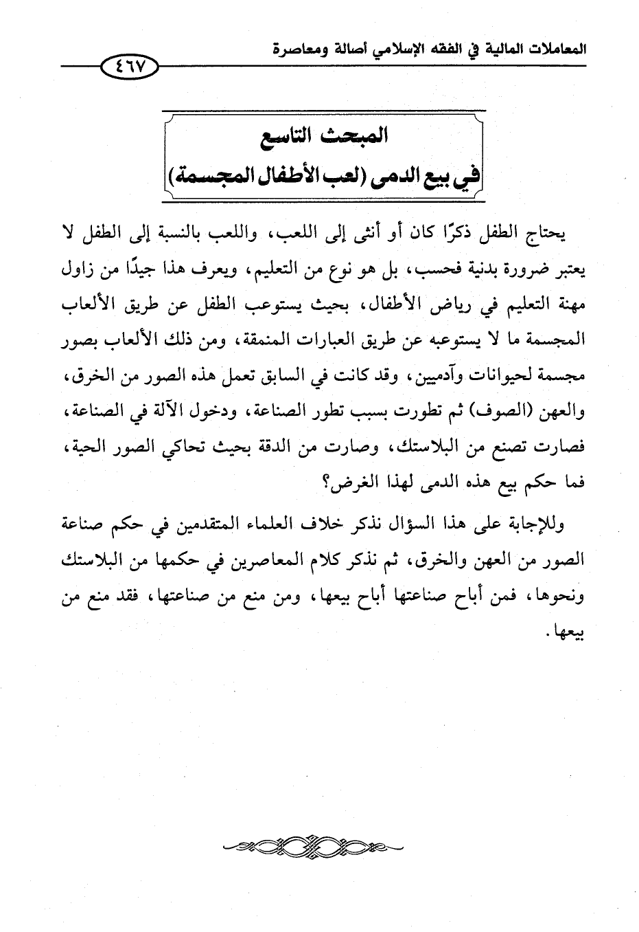 المبحث التاسع في بيع الدمى (لعب الأطفال المجسمة)