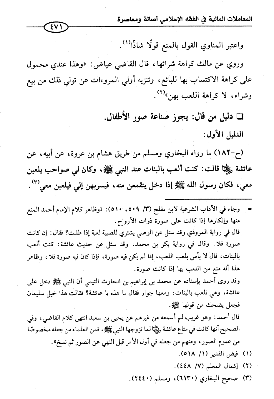 (ح-١٨٢) ما رواه البخاري ومسلم من طريق هشام بن عروة، عن أبيه، عن عائشة - رضي الله عنها - قالت: كنت ألعب بالبنات عند النبي - صلى الله عليه وسلم -، وكان لي صواحب يلعبن معي، فكان رسول الله - صلى الله عليه وسلم - إذا دخل يتقمعن منه، فيسربهن إلى فيلعبن معي (¬٣).