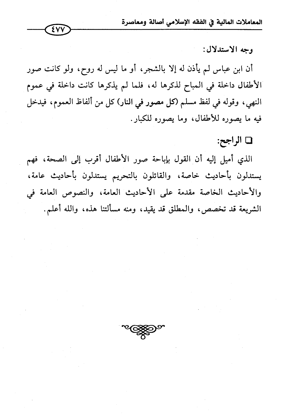 أن ابن عباس لم يأذن له إلا بالشجر، أو ما ليس له روح، ولو كانت صور الأطفال داخلة في المباح لذكرها له، فلما لم يذكرها كانت داخلة في عموم النهي، وقوله في لفظ مسلم (كل مصور في النار) كل من ألفاظ العموم، فيدخل فيه ما يصوره للأطفال، وما يصوره للكبار.