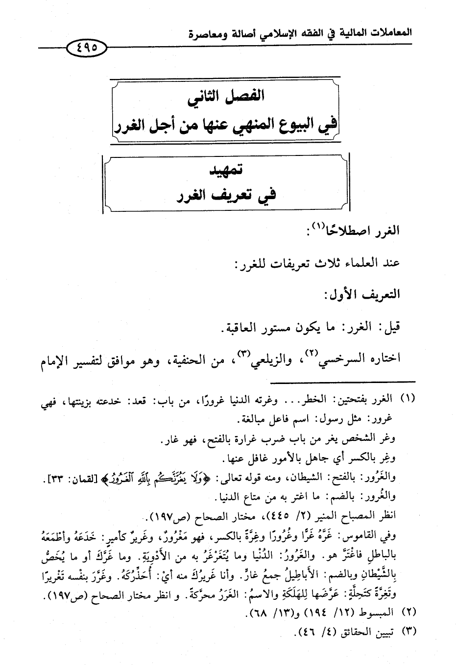 الفصل الثاني في البيوع المنهي عنها من أجل الغرر