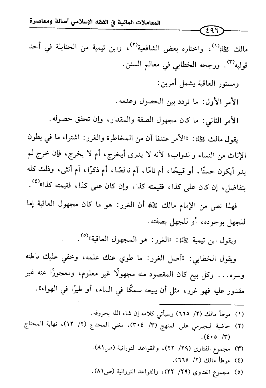 ويقول ابن تيمية - رحمه لله -: " الغرر: هو المجهول العاقبة " (¬٥).