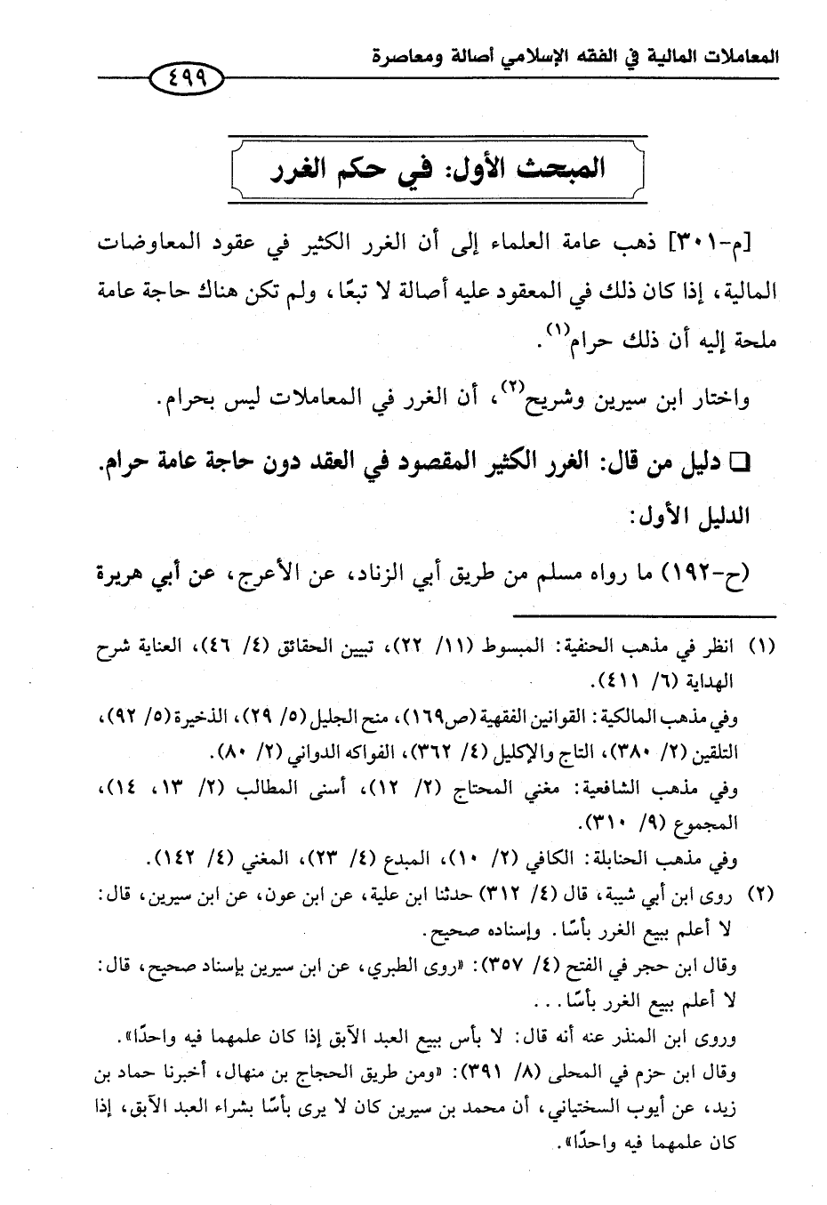 المبحث الأول: في حكم الغرر