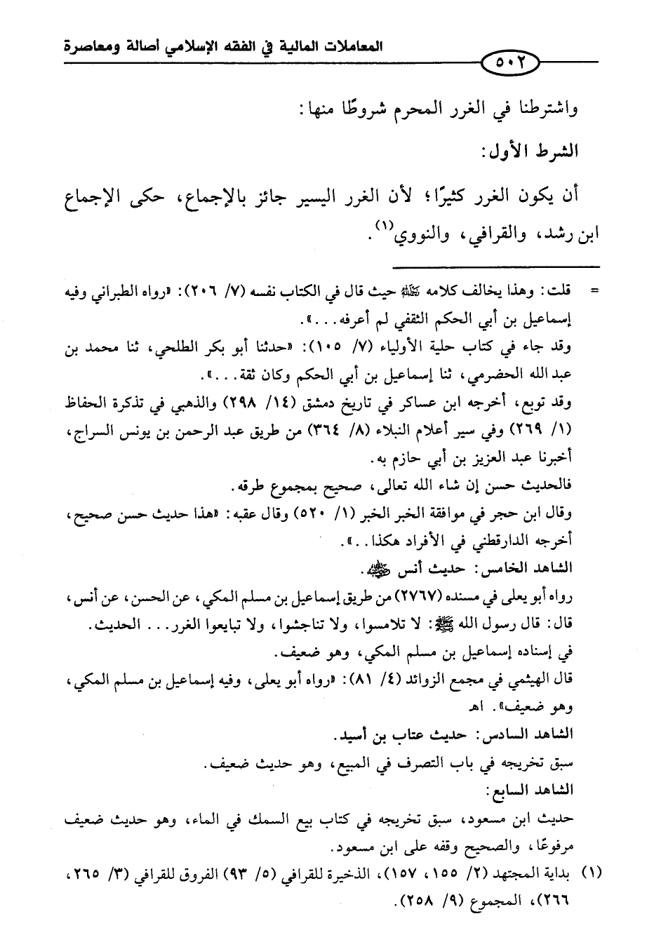 أن يكون الغرر كثيرًا؛ لأن الغرر اليسير جائز بالإجماع، حكى الإجماع ابن رشد، والقرافي، والنووي (¬١).