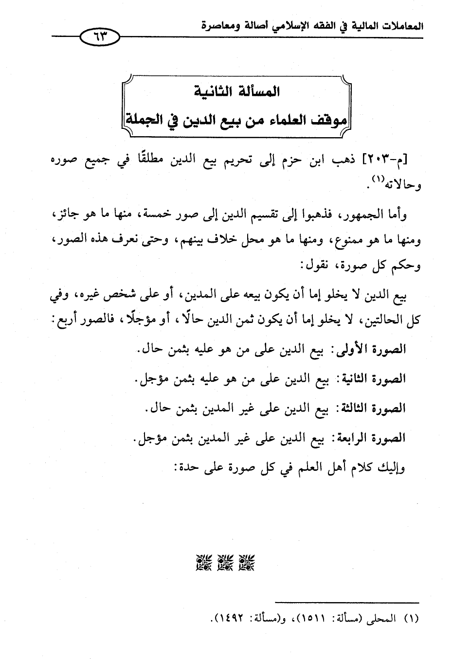 (¬١) المحلى (مسألة: ١٥١١)، و (مسألة: ١٤٩٢).