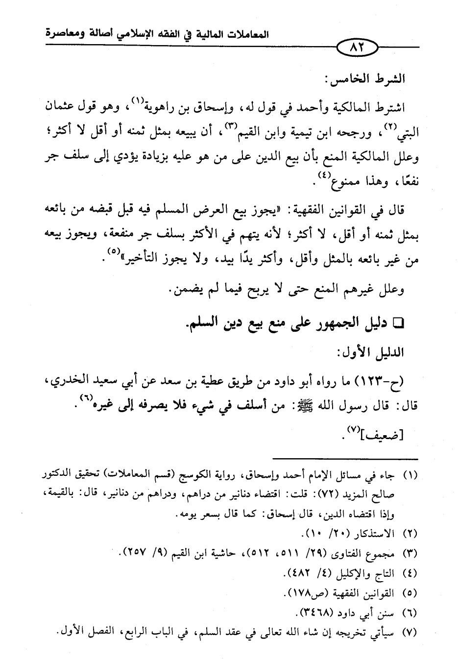 (¬٧) سيأتي تخريجه إن شاء الله تعالى في عقد السلم، في الباب الرابع، الفصل الأول.