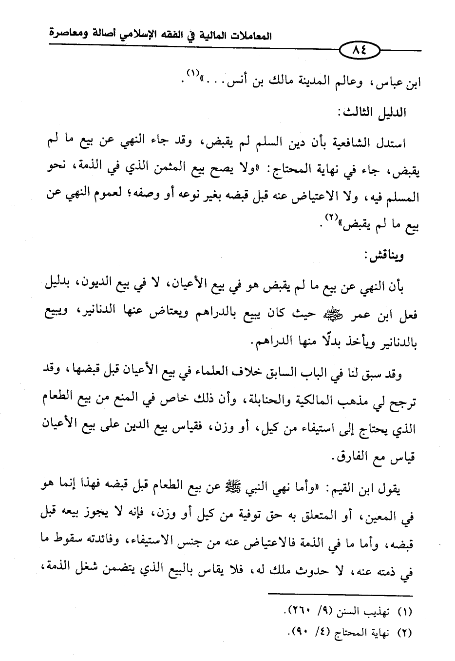 بأن النهي عن بيع ما لم يقبض هو في بيع الأعيان، لا في بيع الديون، بدليل فعل ابن عمر - رضي الله عنه - حيث كان يبيع بالدراهم ويعتاض عنها الدنانير، ويبيع بالدنانير ويأخذ بدلاً منها الدراهم.
