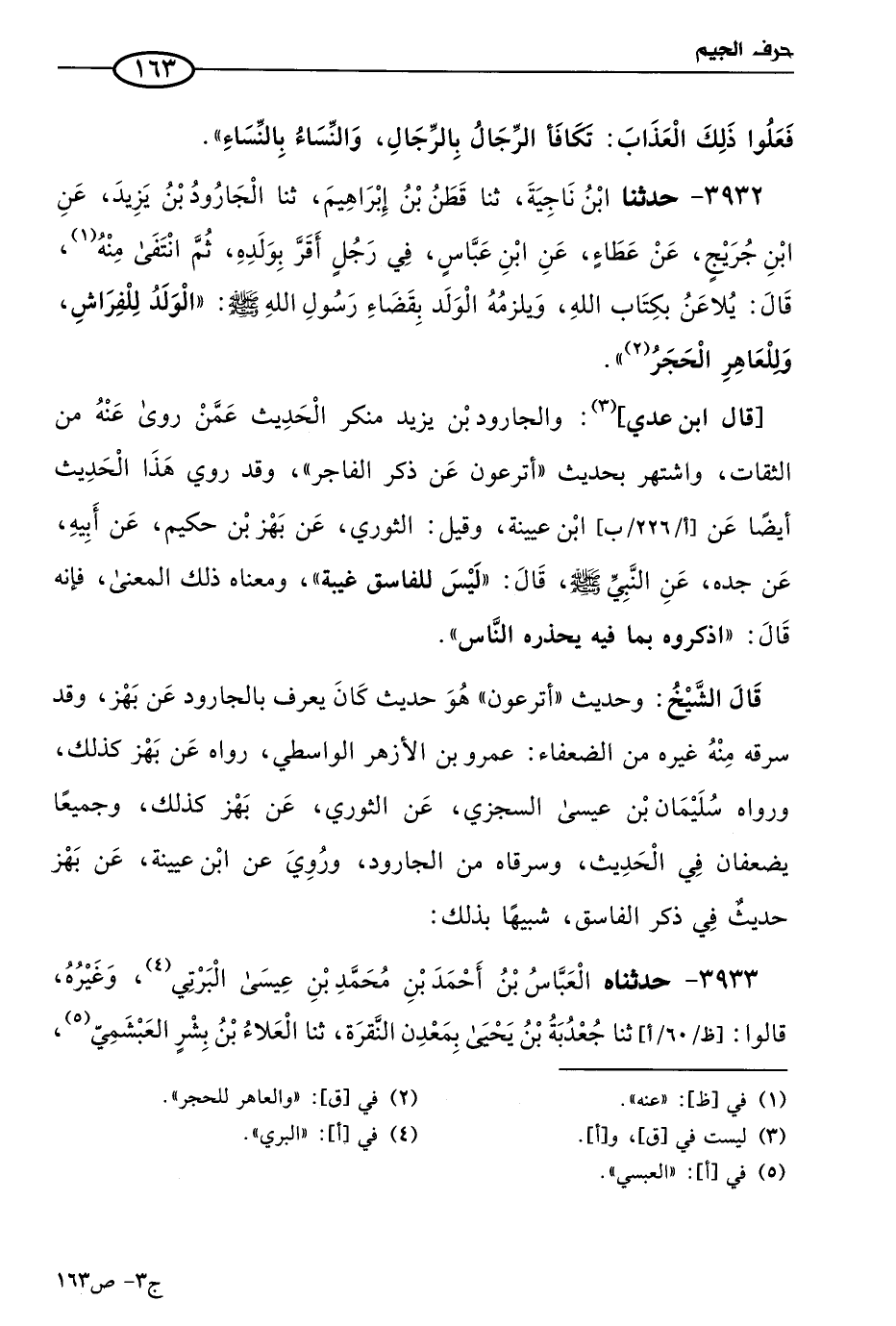 3933 - حَدثناهُ العباس بن أحمد بن مُحمد بن عيسى البرتي، وغيره، قالوا: حَدثنا جعدبة بن يَحيى بمعدن نقره، حَدثنا العلاء بن بشر العبشمي، عن سفيان بن عُيَينة، عن بهز بن حكيم، عن أبيه، عن جَدِّهِ، قال: قال رسول الله صَلى الله عَليه وسَلم: ليس للفاسق غيبة.