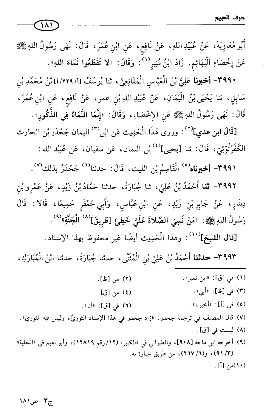 3992 - حَدثنا أحمد بن علي، حَدثنا جبارة، حَدثنا حماد بن زيد، عن عَمرو بن دينار، عن جابر بن زيد، عن ابن عباس، وأبي جعفر، جميعًا، قالا: قال رسول الله صَلى الله عَليه وسَلم: من نسي الصلاة علي خطِئ طريق الجنة.