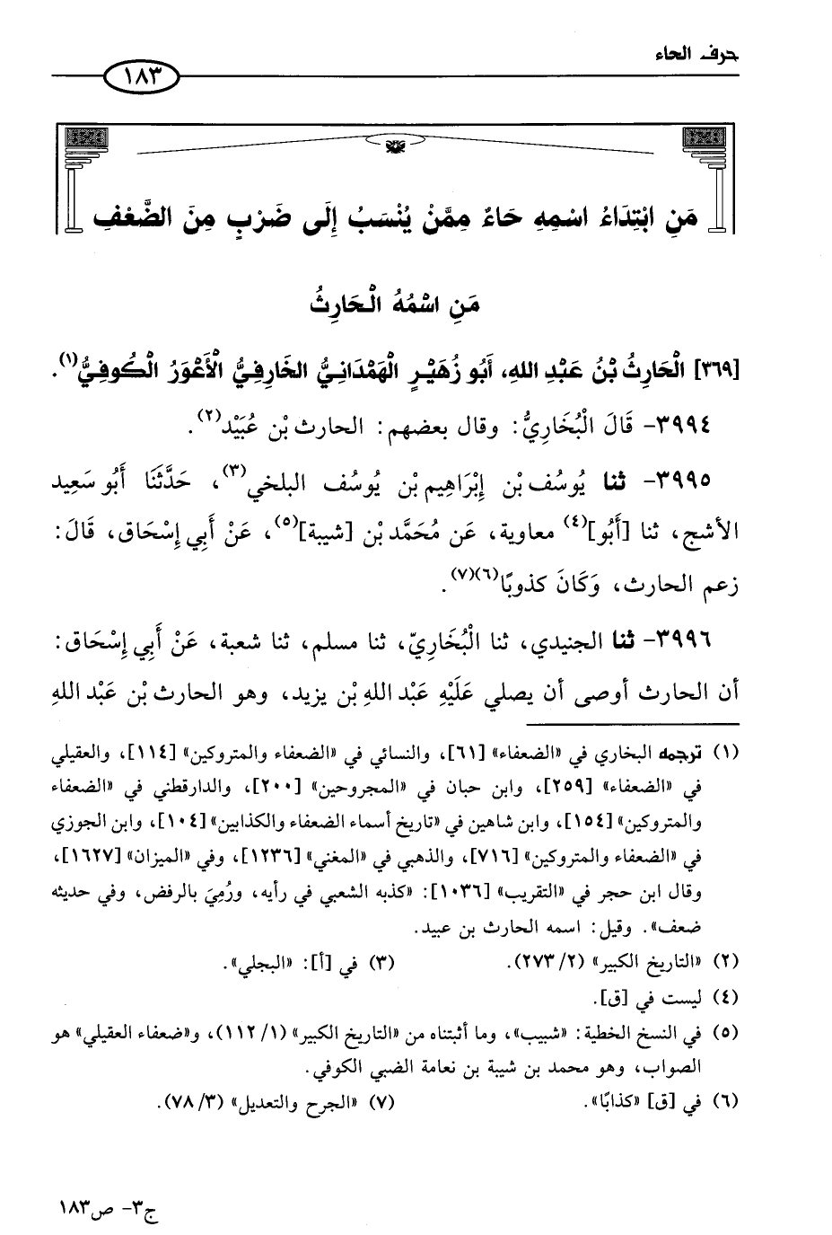[369] الحارث بن عَبد الله، أَبو زهير الهمداني الخارفي الأعور الكوفي.