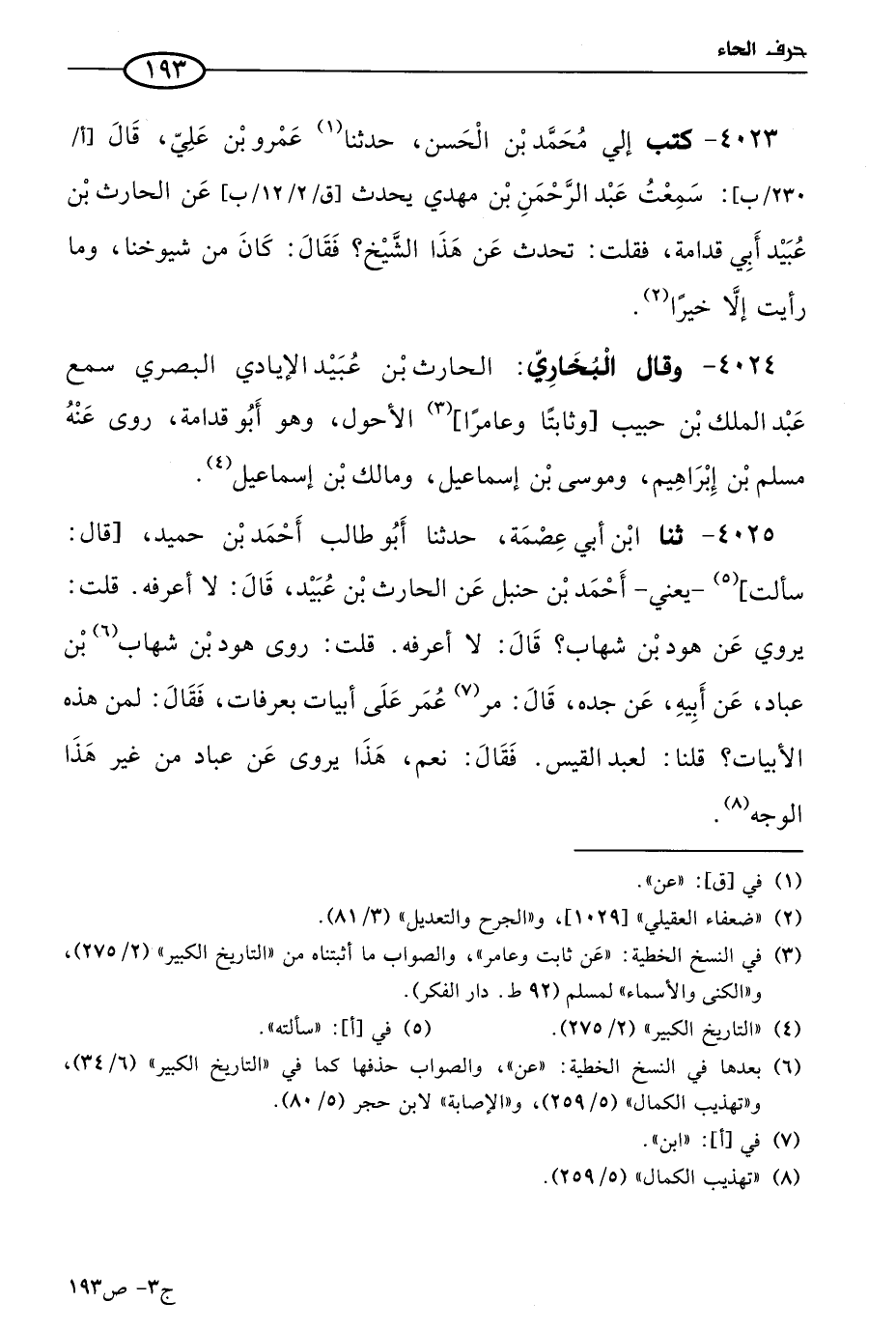 4023 - كتب إلي مُحمد بن الحسن، حَدثنا عَمرو بن علي، قال: سمعتُ عَبد الرحمن بن مهدي يحدث عن الحارث بن عُبيد أبي قدامة، فقلت: تحدث عن هذا الشيخ؟ فقال: كان من شيوخنا، وما رأيت إلا خيرا.