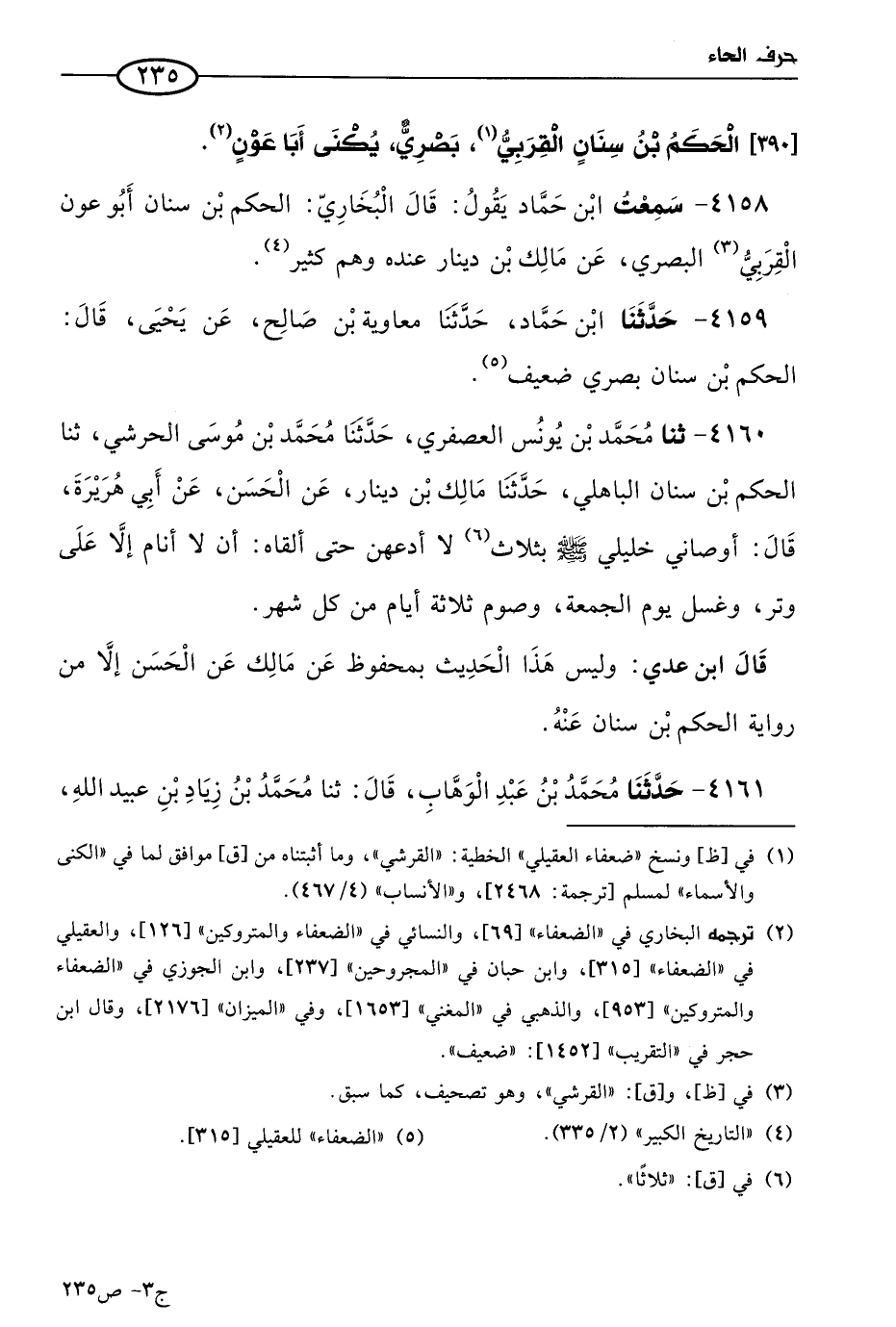 4158 - سمعتُ ابن حماد يقول: قال البُخاري: الحكم بن سنان أَبو عون القربي البصري عن مالك بن دينار عنده وهم كثير.