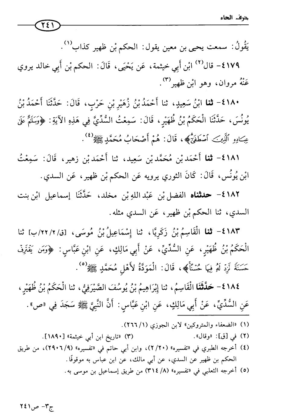 4181 - حَدثنا أحمد بن مُحمد بن سعيد، حَدثنا أحمد بن زهير، قال: سمعتُ ابن يُونُس، قال: كان الثَّوري يرويه عن الحكم بن ظهير، عن السدي.