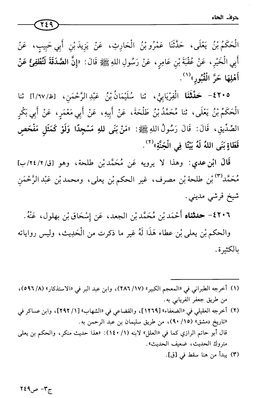 قال ابنُ عَدِي: وهذا لا يرويه عن مُحمد بن طلحة، وهو مُحمد بن طلحة بن مصرف، غير الحكم بن يَعلَى، ومُحمد بن عَبد الرحمن شيخ قرشي مديني.