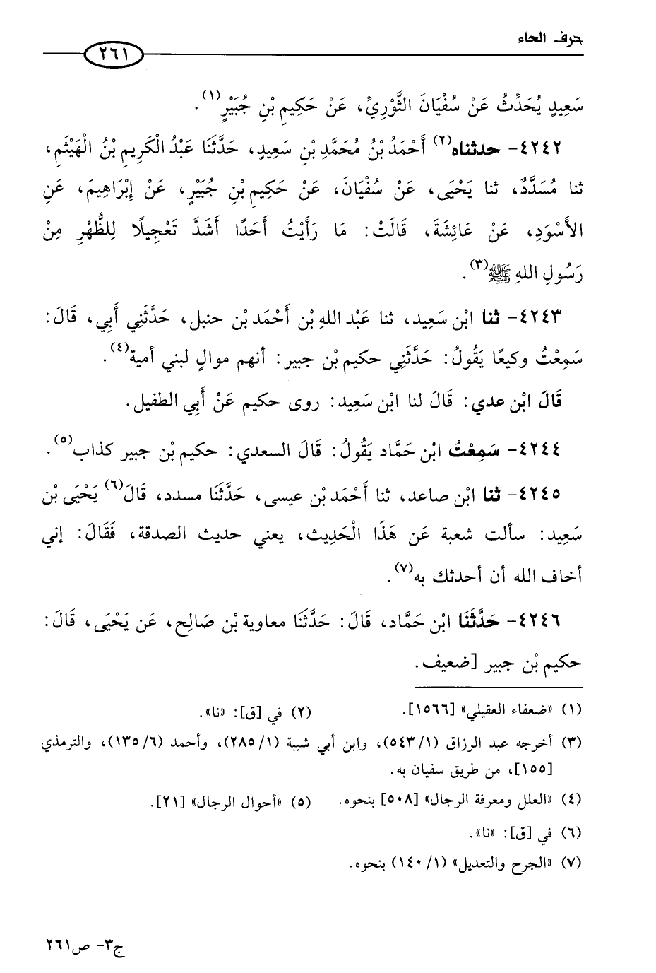 4244 - سمعتُ ابن حماد يقول: قال السعدي: حكيم بن جُبَير كذاب.