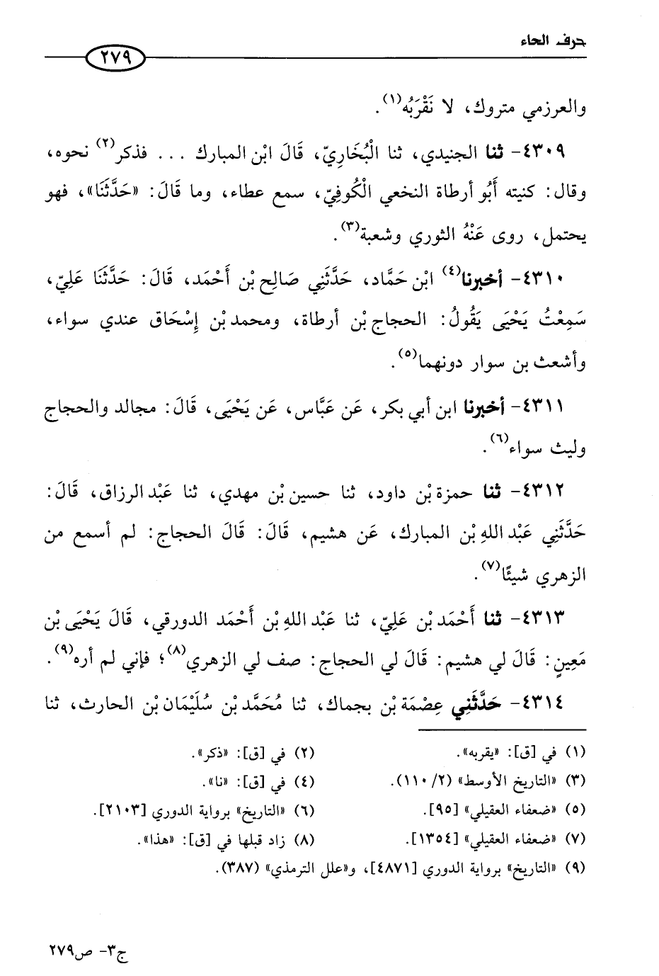 4312 - حَدثنا حمزة بن داود، حَدثنا حسين بن مهدي، حَدثنا عَبد الرَّزَّاق، قال: حَدَّثني عَبد الله بن المُبَارك، عن هشيم، قال: قال الحجاج لم أسمع من الزُّهْري شَيئًا.