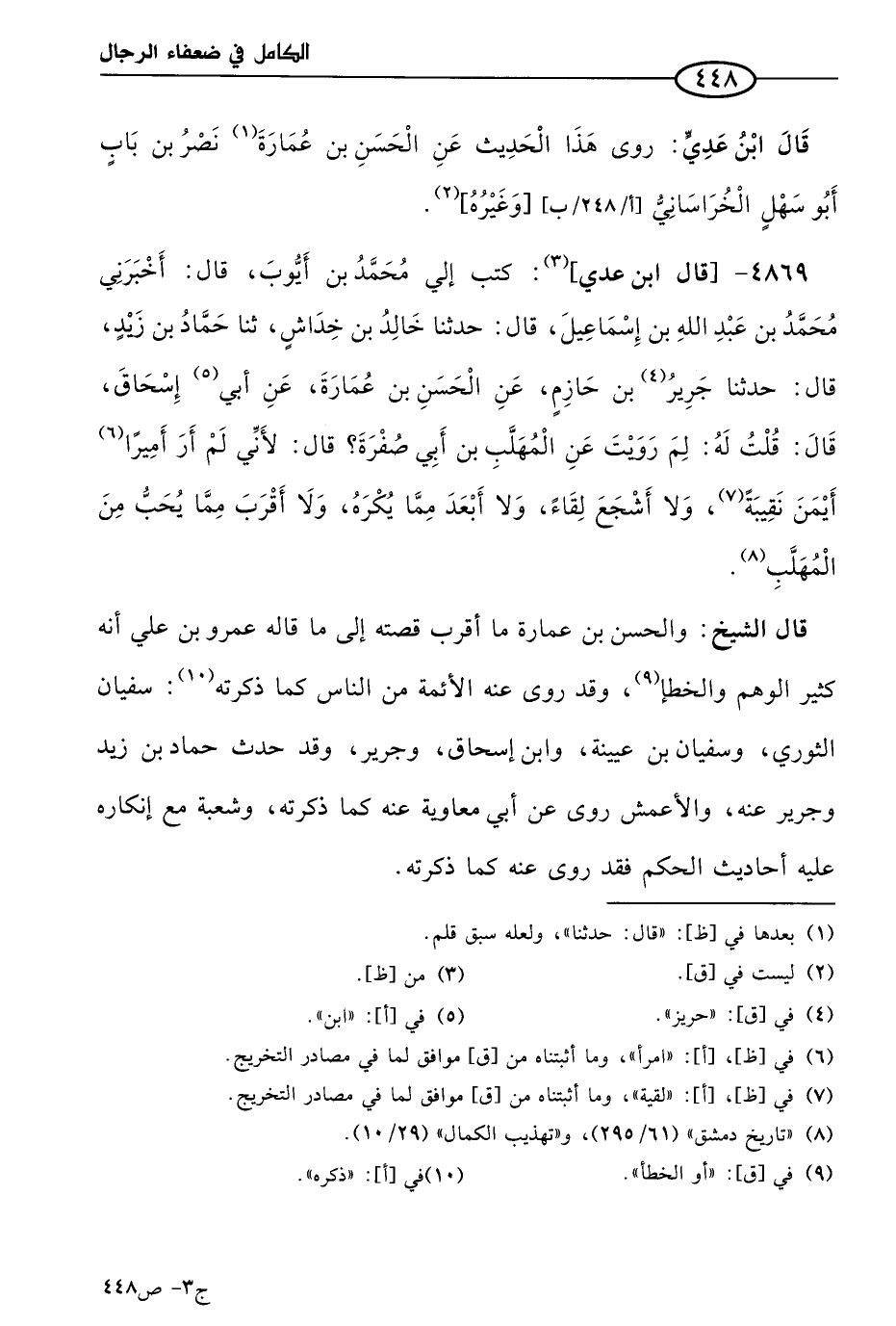 كتاب الكامل في ضعفاء الرجال لابن عدي - الرشد (اسم الجزء: 3)