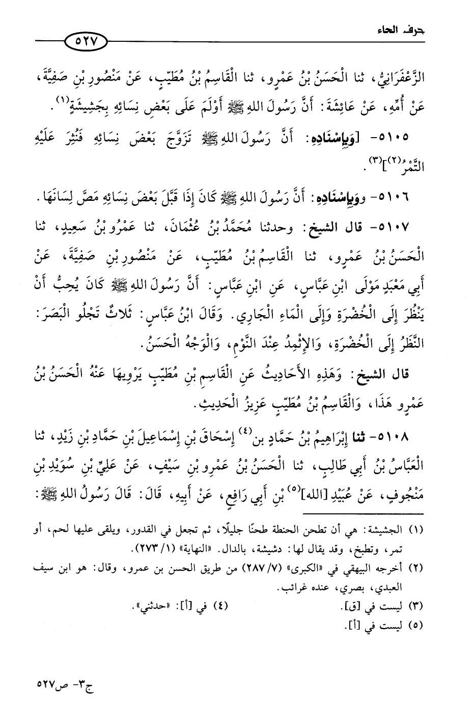 (2) يَعني بهذا الإسناد: حدثنا مُحمد بن عثمان وراق عبدان، حَدثنا عَمرو بن سعيد الزعفراني، حَدثنا الحسن بن عَمرو، حَدثنا القاسم بن مطيب، عن منصور بن صفية، عن أُمه، عن عائشة.